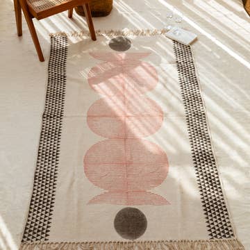 Tapis géométrique pêche en laine tuftée main avec motif labyrinthe en vente B2B