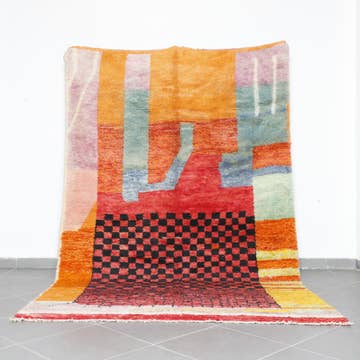 Découvrez le summum du confort avec notre magnifique tapis marocain Azilal. Confectionné en laine douce 100 % pure, ce tapis berbère offre une chaleur inégalée et reste non teint, célébrant la beauté naturelle. Marcher dessus est un vrai plaisir. CARACTÉRISTIQUES PRINCIPALES : • Matière : 100 % laine • Origine : Haut Atlas, Maroc • Teinture : Naturellement organique • État : Impeccable - propre, sans défaut ni tache • Délai de fabrication : 2 à 5 semaines Nous assurons une livraison rapide via DHL Express/FedEx Express, avec une arrivée à votre porte en 5 à 7 jours ouvrables. Les expéditions sont entièrement assurées contre la perte.