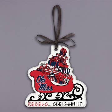 Cette décoration en verre de 4 pouces avec cadre en laiton présente des œuvres d'art originales représentant les monuments classiques du campus de l'État du Mississippi. Cette pièce est un ajout classique à la collection des fêtes de tout fan, étudiant ou diplômé de l'État du Mississippi.