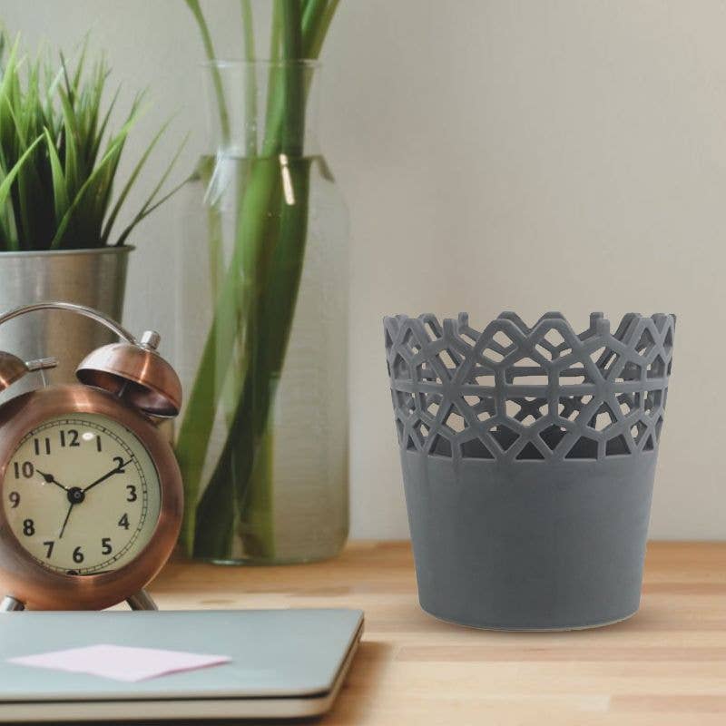 Élevez votre décoration intérieure avec notre pot en céramique noir mat de 10"x10", un parfait mélange d'élégance moderne et de fonctionnalité. Cette pièce polyvalente sert à la fois de jardinière élégante et d'accent décoratif chic, s'intégrant parfaitement dans tout design d'intérieur. Caractéristiques principales : * Design élégant : Les deux tiers inférieurs du pot présentent une finition lisse et noire mate, exhalant une sophistication minimaliste. Le tiers supérieur arbore un travail de treillis complexe, ajoutant une touche d'élégance intemporelle. * Utilisation polyvalente : Idéal pour abriter vos plantes d'intérieur préférées ou servir de pièce décorative autonome sur les tables basses, les étagères ou comme pièce maîtresse. * Construction durable : Fabriqué en céramique de haute qualité, ce pot assure longévité et sensation de qualité supérieure.