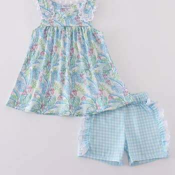 Ajoutez une touche de couleur à la garde-robe de votre petit avec l'ensemble court à carreaux jaunes Juliette. Il est doté d'un collier jaune orné de trois fleurs précieuses. Le haut est confectionné avec un magnifique motif à carreaux jaunes et un short rose assorti.