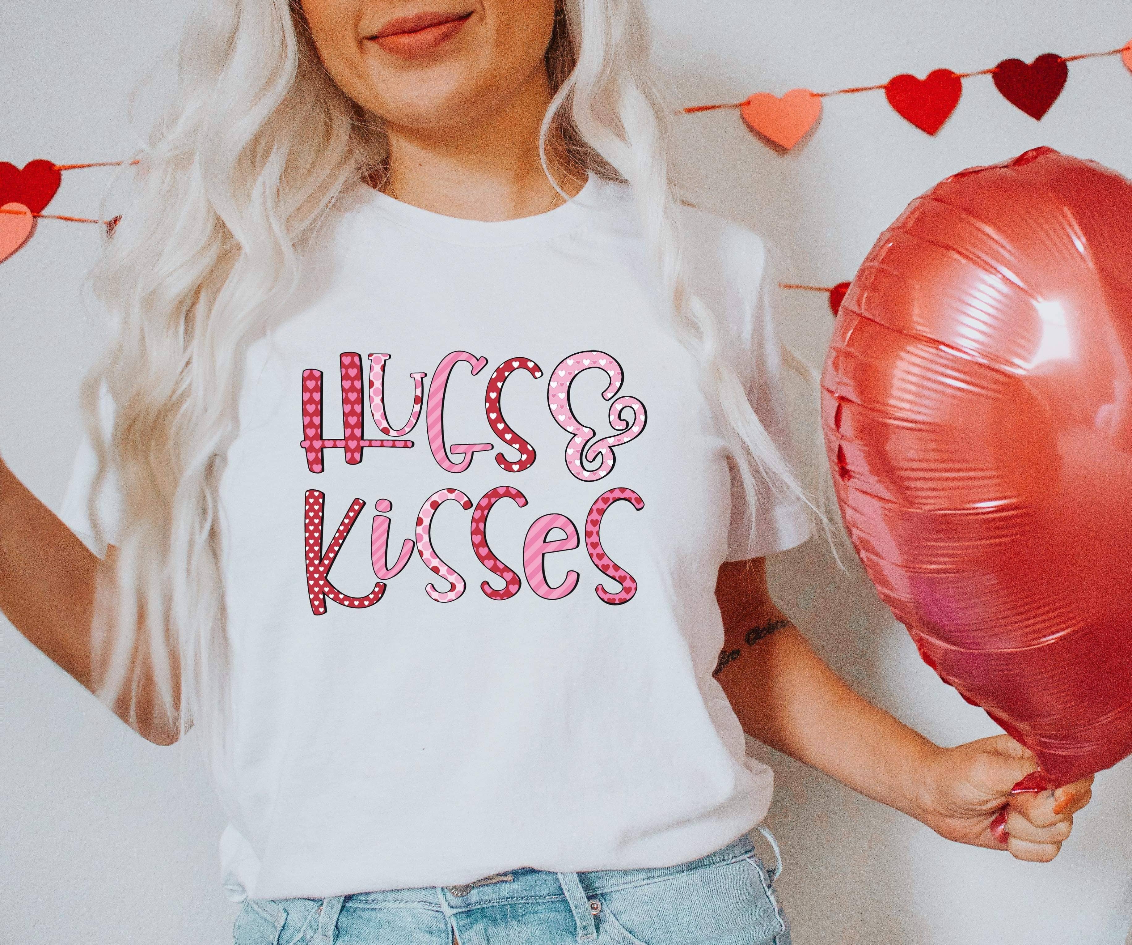 Chemise Saint-Valentin - T-shirt Saint-Valentin pour femme -T-shirts Saint-Valentin - Chemises de Saint-Valentin -T-Shirt Hugs Bisous et Vœux de Saint-Valentin en vente B2B