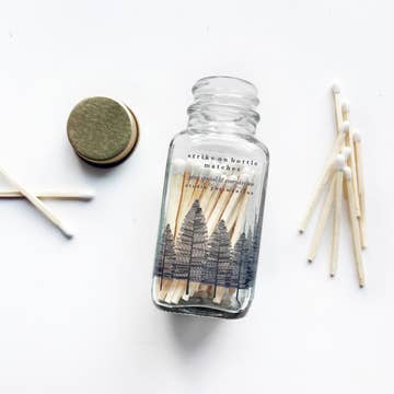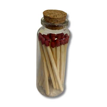 Affichez et utilisez vos allumettes avec style ! Faire de l'allumage d'une bougie une expérience agréable. À la fois pratiques et esthétiques, ces allumettes en bois sont le complément parfait à toute commande de bougies. Petits bocaux en verre // 20 allumettes de 2 pouces | 2,76” de hauteur Grands bocaux en verre // 50 allumettes de 3 pouces | 4” de hauteur Fermés par un bouchon en liège et un grattoir adhésif circulaire au fond de la bouteille.