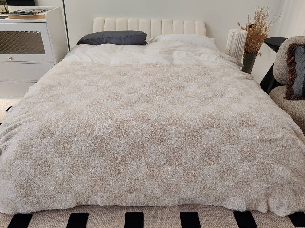 Couverture chaude double épaisseur motif léopard beige