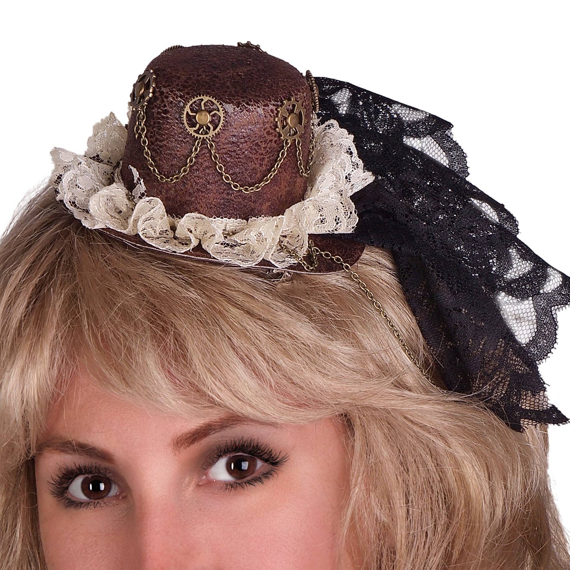 Chapeau haut de forme rouge steampunk avec dentelle en vente B2B
