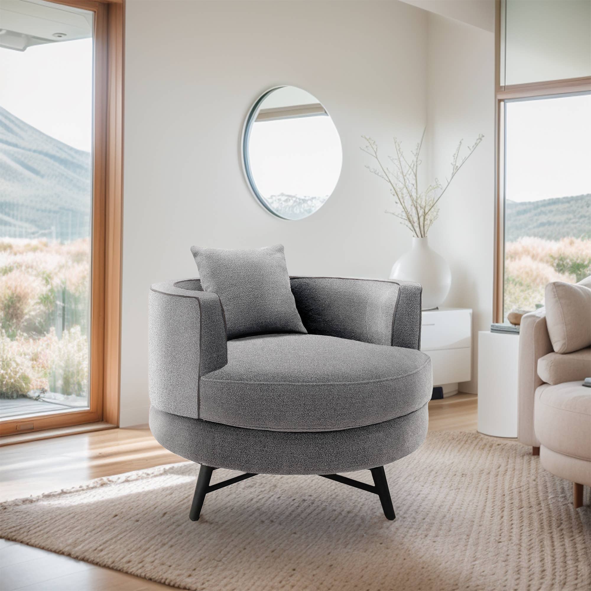 La chaise d'appoint en bouclé blanc est un mélange harmonieux de confort et de chic industriel. Son revêtement doux et texturé vous invite à vous détendre, tandis que le cadre en fer élégant ajoute une touche de modernité. Cette pièce élégante n'est pas seulement une option d'assise confortable, mais aussi un point focal visuel saisissant, fusionnant harmonieusement confort et esthétique de design moderne et audacieuse. Dimensions du produit : Global : 31"L x 21"P x 26"H; Poids : 32,2 LBS; Siège : 24"L x 21"P x 15"H; Épaisseur du siège : 6"H; Dossier : 16"L x 7"P x 10"H; Épaisseur du dossier : 5,5"P; D'accoudoir à accoudoir : 31"L; Hauteur des pieds : 9"H.