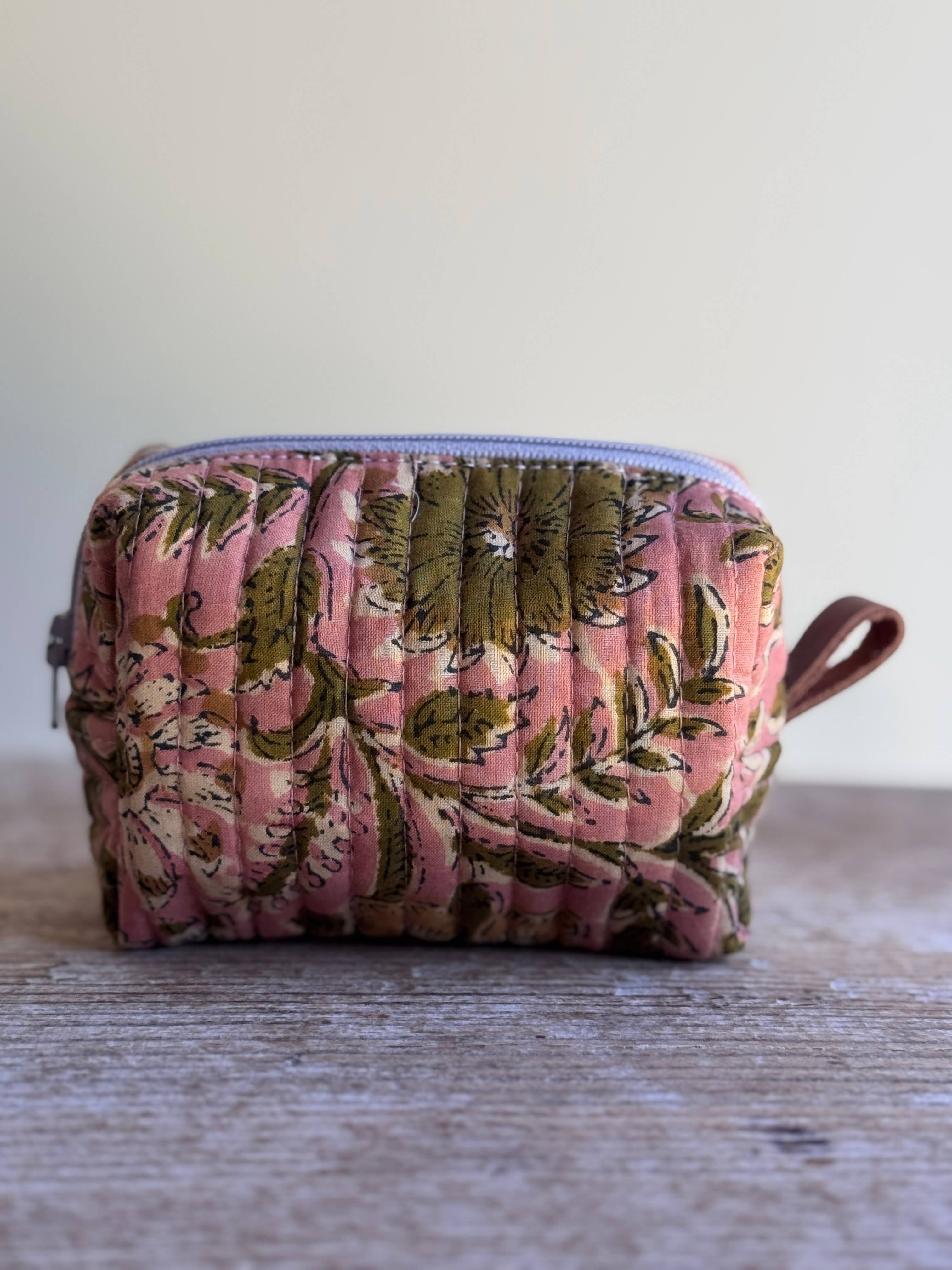 Trousse à cosmétiques - Coton matelassé imprimé à la main