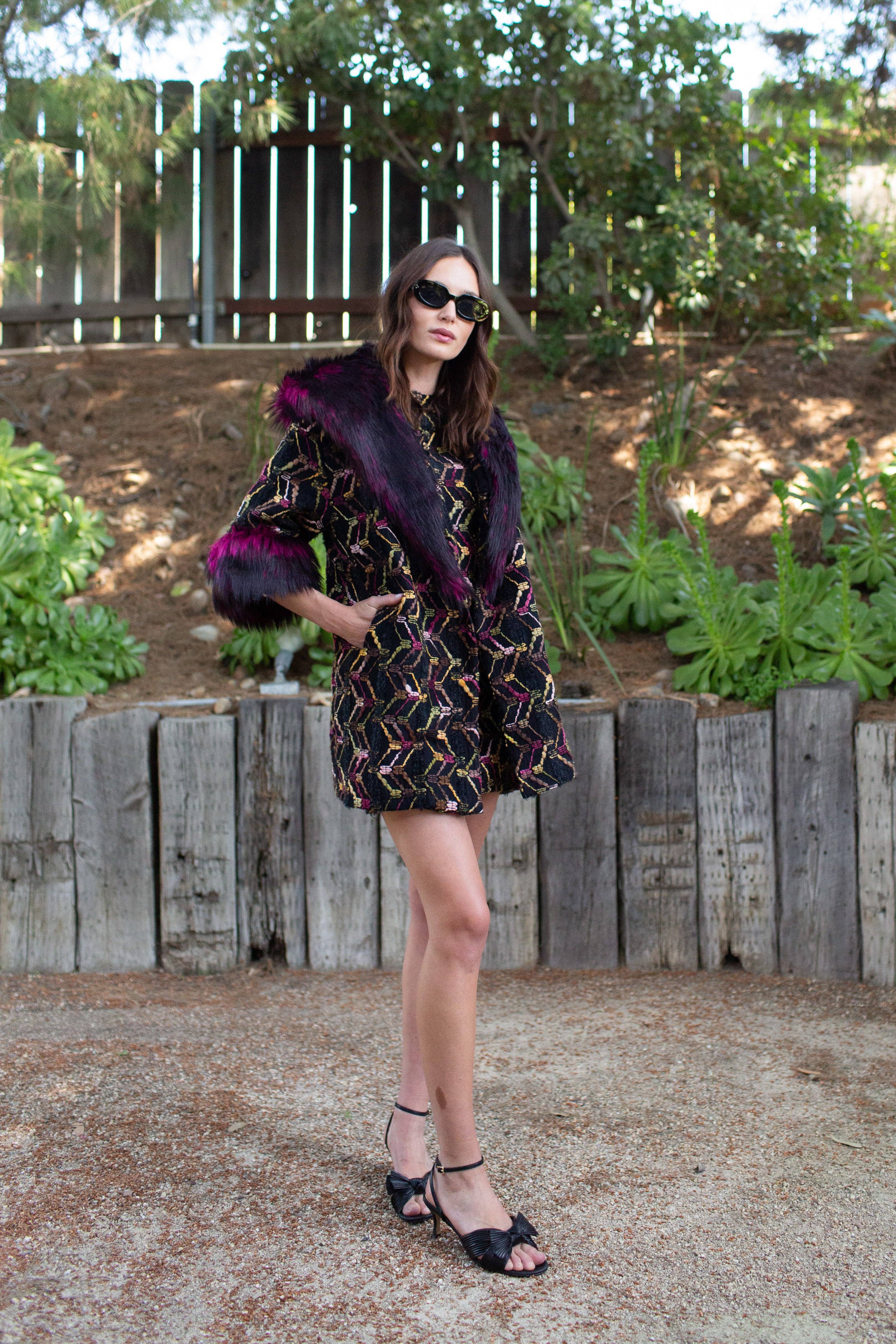 De La Creme - Manteau midi militaire en fausse fourrure pour femme en vente B2B