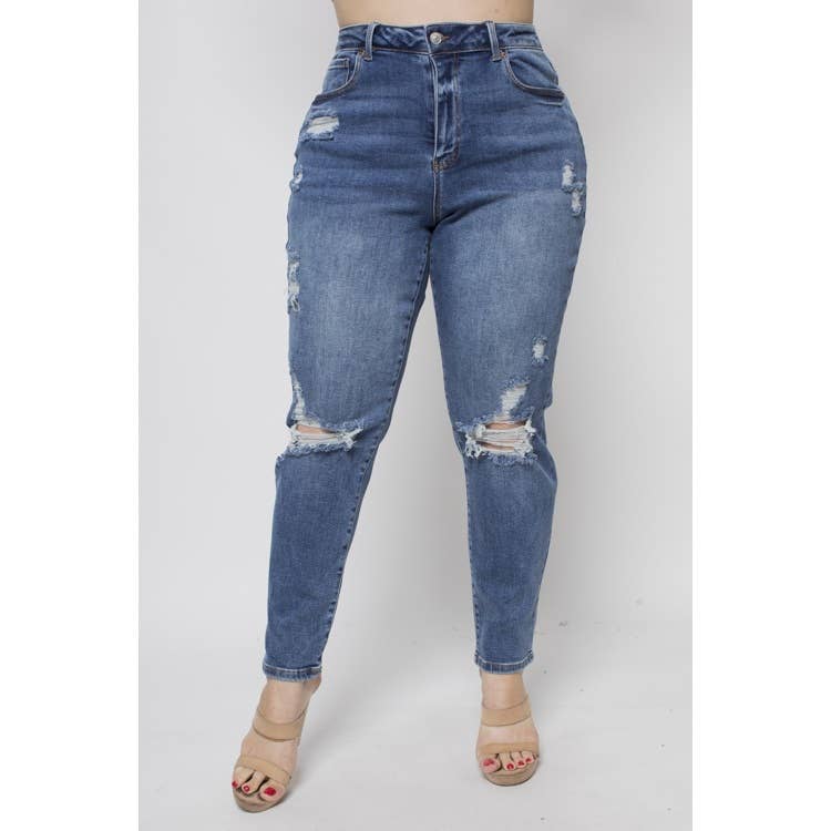 Jean skinny grande taille effet ventre plat et rehaussement fessier bleu foncé PH3502X en vente B2B