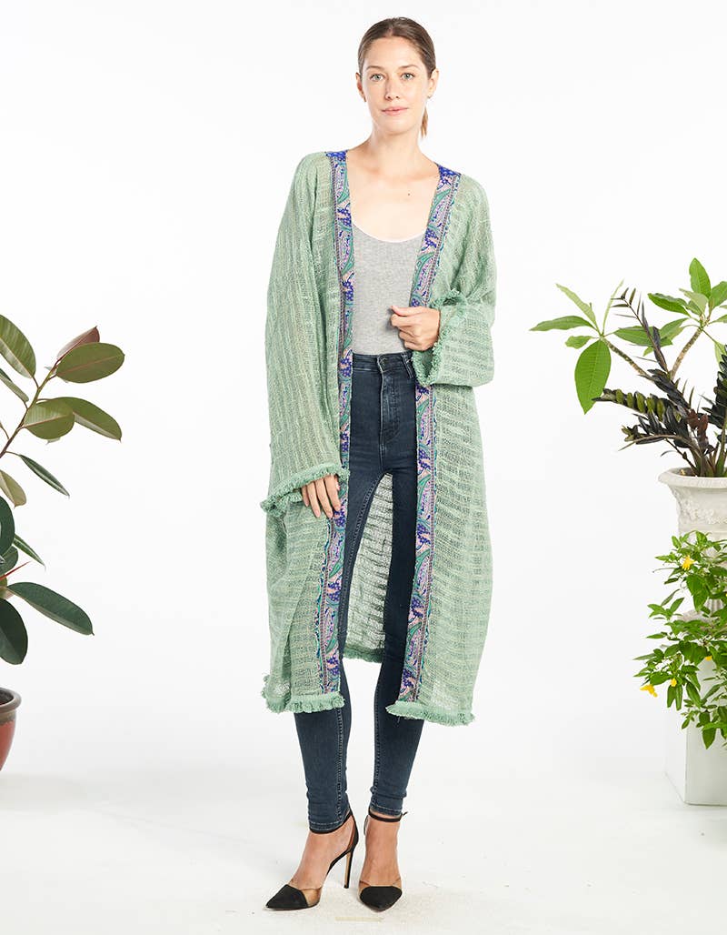 Profitez d'un confort et d'un style ultimes avec notre peignoir kimono en mousseline écologique à 4 couches. Fabriqué à partir de coton d'origine éthique et cultivé biologiquement. Ce kimono est fabriqué en mousseline douce, respirante et légère Le tissu en mousseline est doux et doux sur la peau, offrant une expérience luxueuse et confortable. Il permet la circulation de l'air et vous permet de rester à l'aise tout au long de la journée. L : 29 pouces - 74 cm L : 39 pouces - 100 cm Son style fluide s'adapte parfaitement à toutes les morphologies et ajoute une touche d'élégance à n'importe quelle tenue. Parfait pour se prélasser à la maison, faire des courses ou se déguiser pour un événement spécial, ce peignoir kimono polyvalent en coton biologique est un excellent ajout à toute garde-robe. Le tissu est également hypoallergénique et doux pour les peaux sensibles, ce qui le rend adapté à tous les types de peau. Prenez position en faveur d'une mode durable et faites plaisir à vous-même et à la planète avec bienveillance. Ajoutez notre peignoir kimono en mousseline à 4 couches à votre garde-robe dès aujourd'hui et découvrez l'équilibre parfait entre style et durabilité.