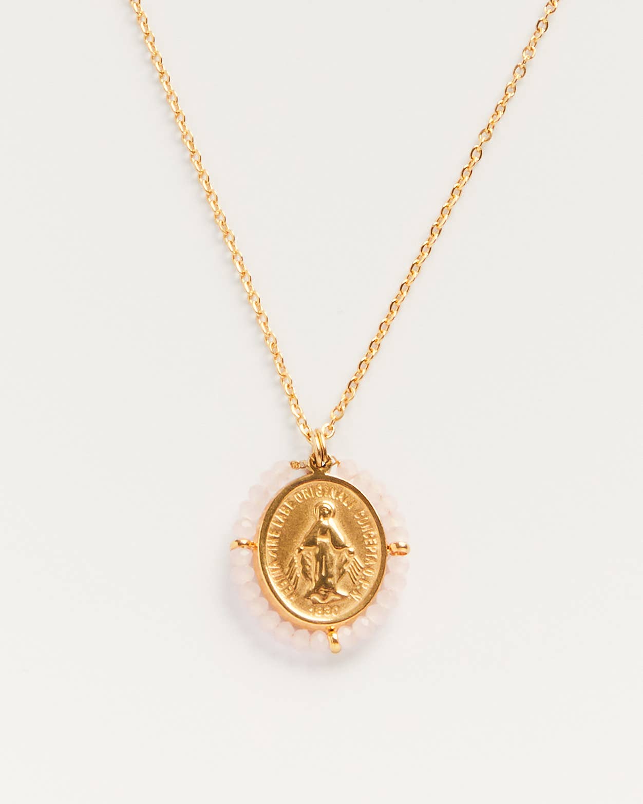 Inspiré par la médaille miraculeuse de Marie, notre collier et pendentif Santa Maria sont nos créations les plus emblématiques. Nous adorons la chaîne délicate et les perles colorées. Mais ce que nous aimons encore plus, c'est le fait que ce collier est hypoallergénique et ne ternit pas. Collier et pendentif en acier inoxydable doré Collier étanche et non ternissant Collier hypoallergénique Longueur : 44 cm Conçu à Paris, assemblé à la main à Lisbonne