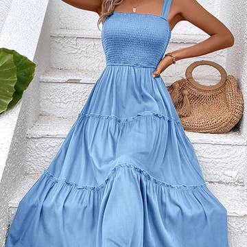 Robe trapèze smockée unie pour l'été en vente B2B