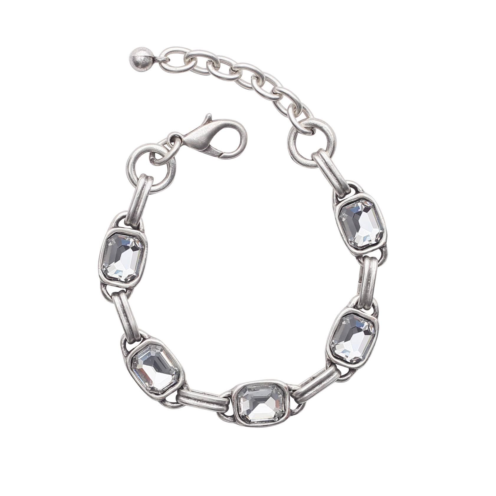 Bracelet à maillons en argent sterling avec pierre améthyste. Pierres de forme rectangulaire serties dans de l'argent sterling 925. 7,5 pouces de long.