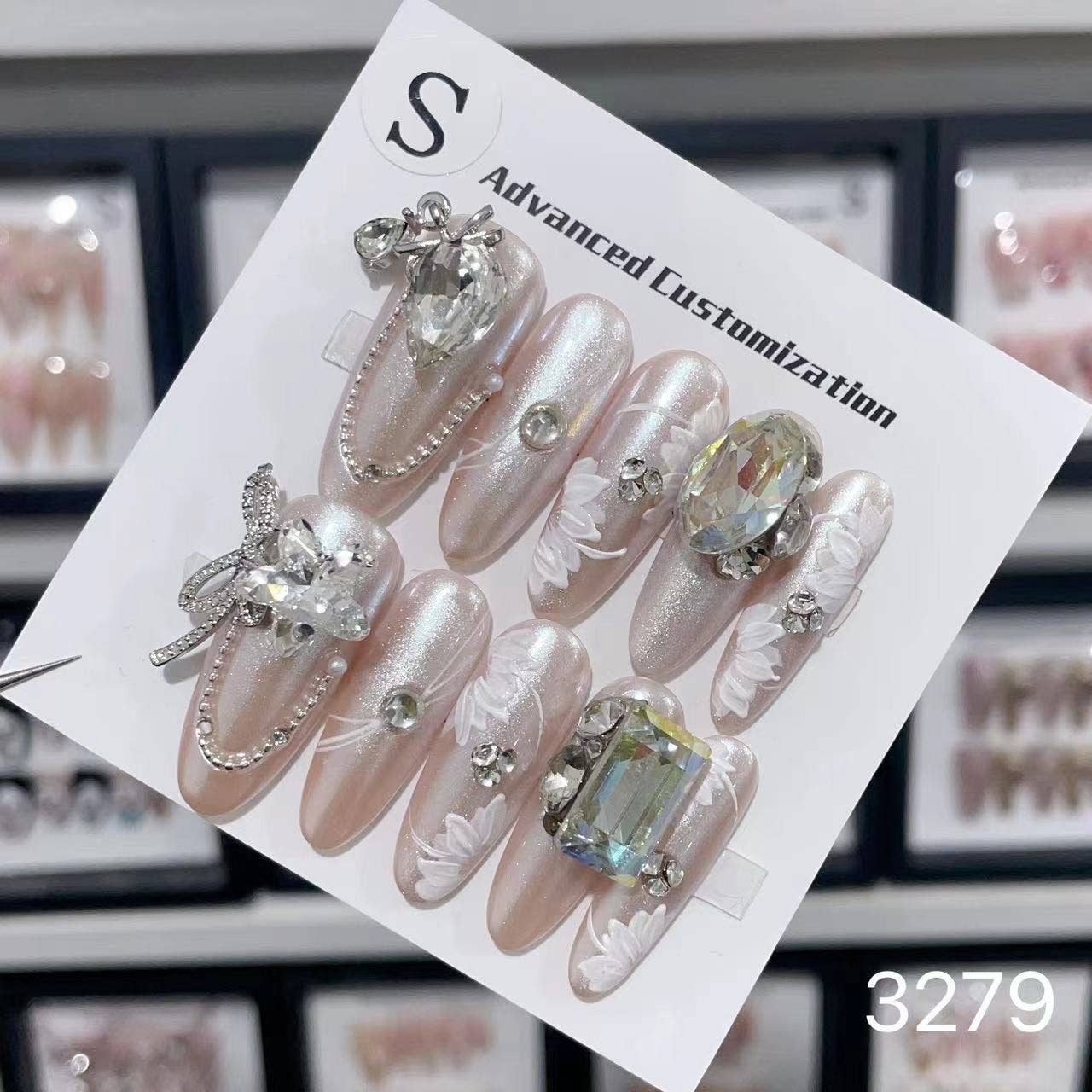 Ongles press-on élégants de luxe avec pierres, 30 pièces, longs - lot de 12 en vente B2B