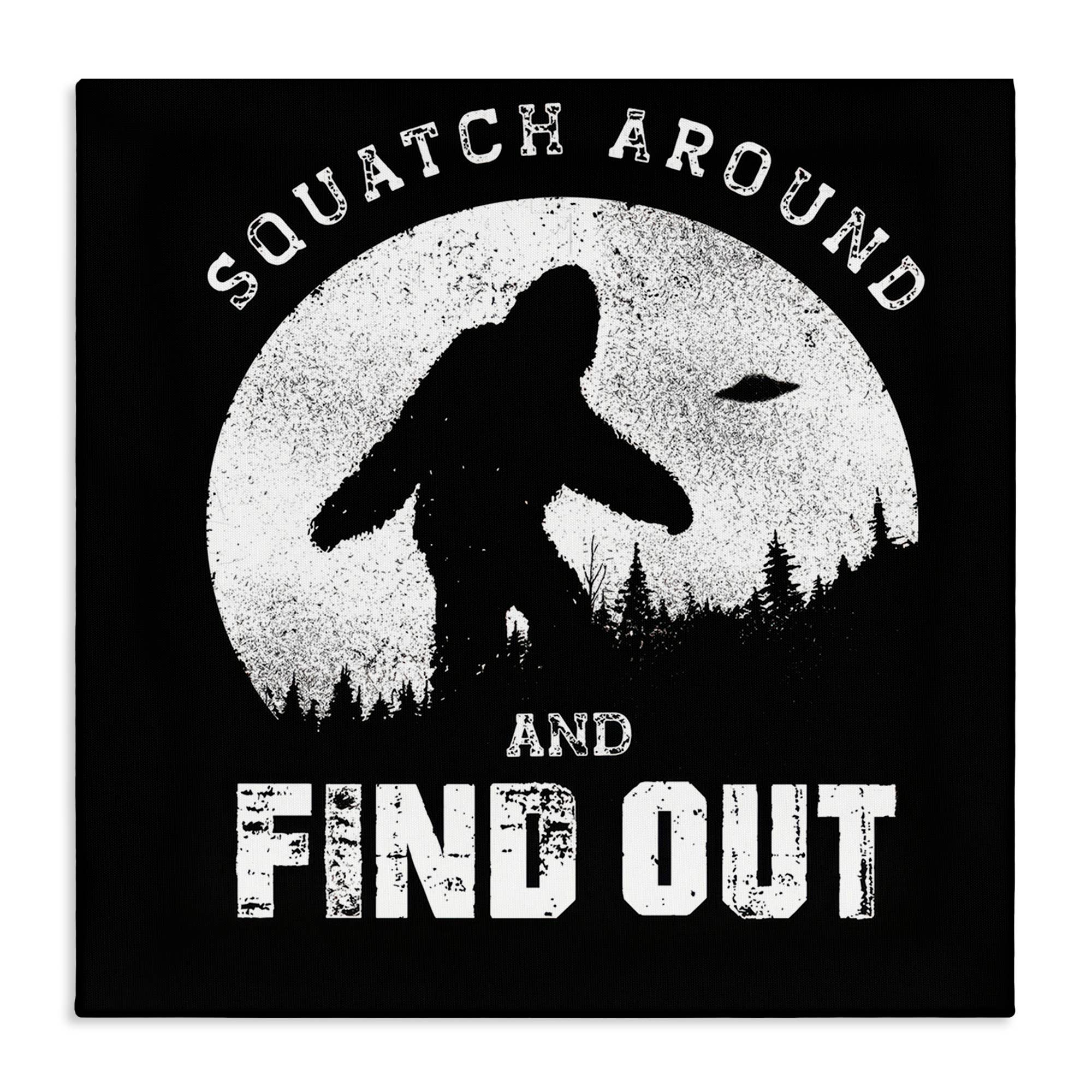 Impression artistique murale de Bigfoot auto-stoppeur sur une route forestière personnalisée en vente B2B