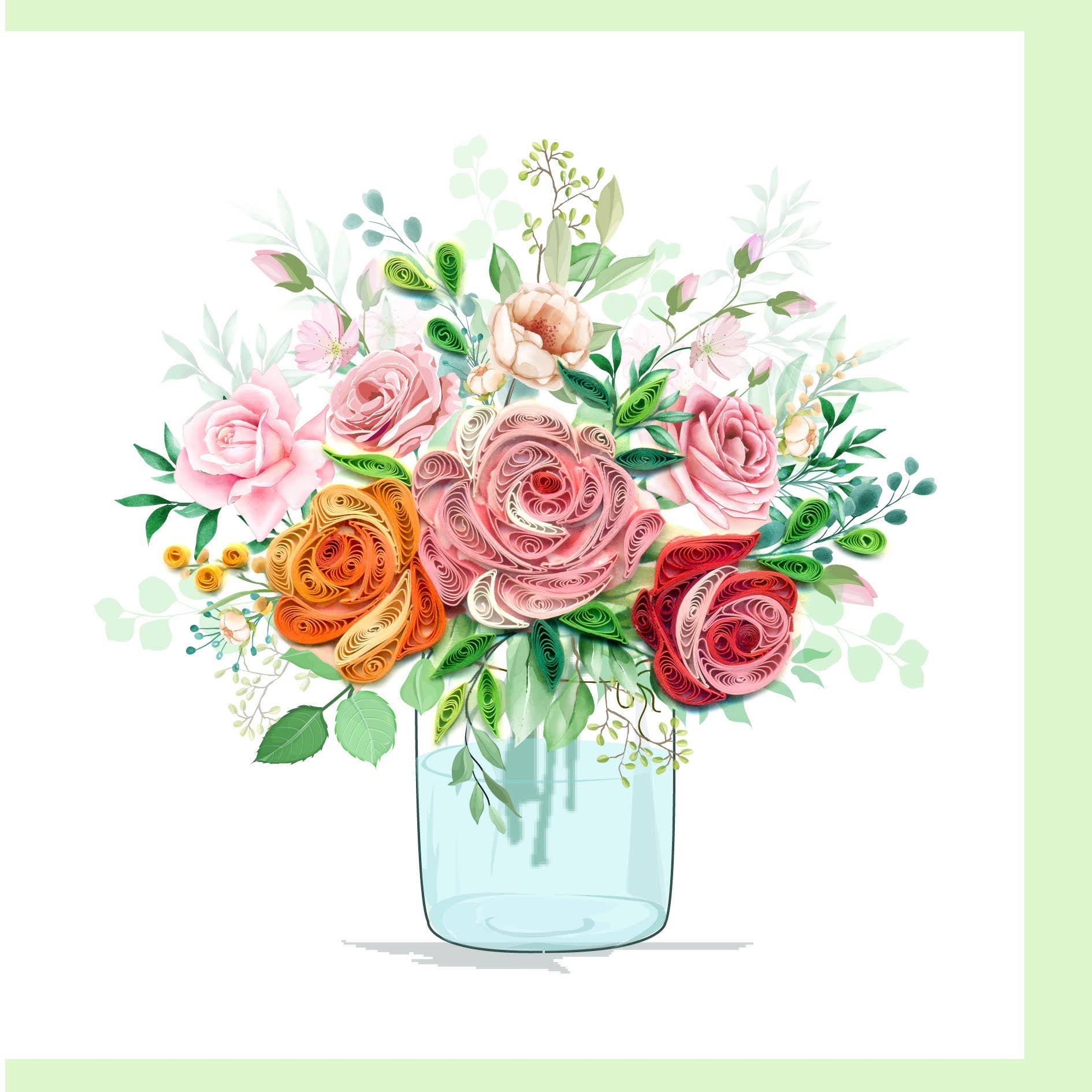 Cette carte exquise fabriquée à la main présente de superbes œuvres d'art en papier fabriquées à la main. Parfait pour toute occasion spéciale comme les anniversaires, les anniversaires et les mariages, il attirera l'attention de votre destinataire grâce à sa beauté sophistiquée. Le quilling est une forme d'art qui consiste à enrouler et à enrouler de petites bandes de papier pour obtenir des motifs complexes, créant ainsi de magnifiques œuvres d'art. La carte pliée mesure 6 po x 6 po. Comprend une carte, une enveloppe, une feuille de message intérieure, emballée dans du cellophane.