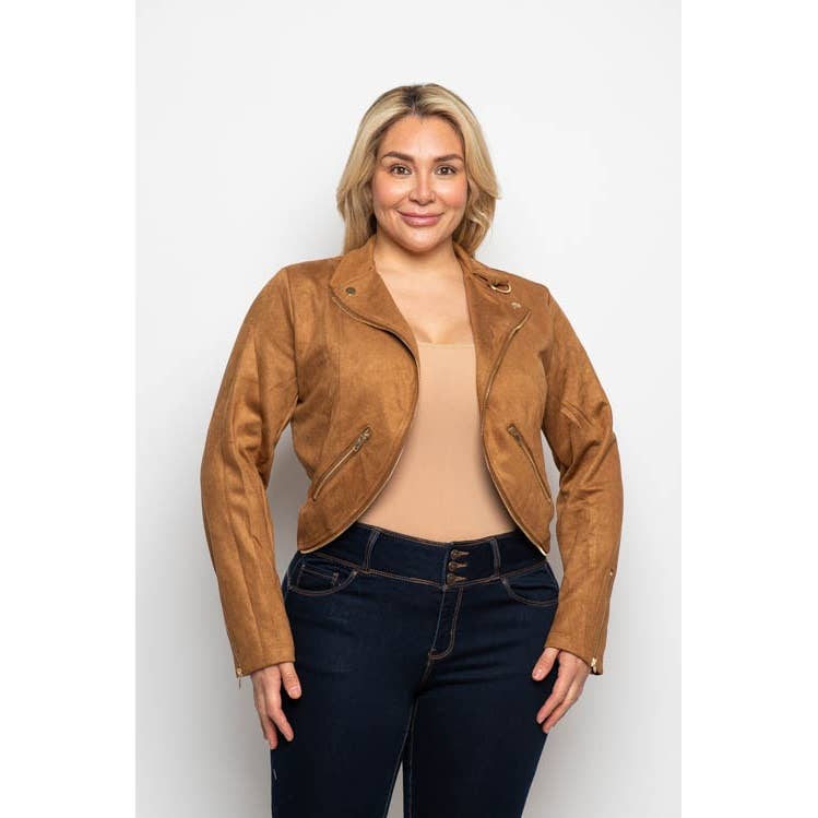 VESTE OUVERTE EN FAUX DAIM À BORDS BRUTS AVEC POCHES (10210-CAMEL) EN VENTE B2B