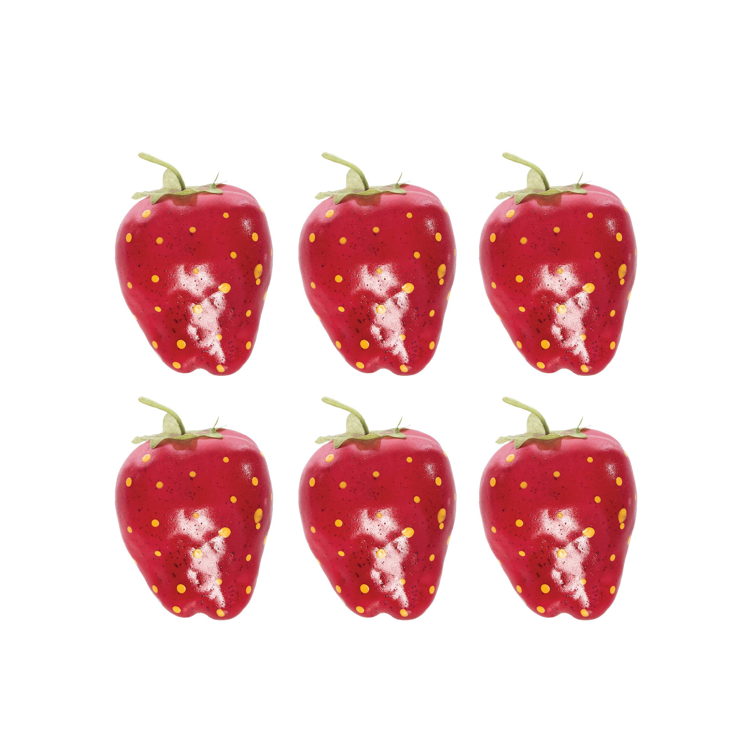 Cet ensemble de 12 fraises décoratives est en mousse peinte avec une finition brillante et une tige enroulée en fil de fer recouvert de papier. Utilisez la tige comme support pour décorer de la verdure ou des guirlandes avec un look estival coloré ! Ils sont également parfaits comme matériau de remplissage décoratif ou pour être dispersés dans les arrangements de table. L'ensemble est soigneusement emballé dans une boîte en plastique transparent pour une présentation facile dans votre magasin. Chaque fraise mesure environ 2 pouces de long et 1,5 pouces de large.