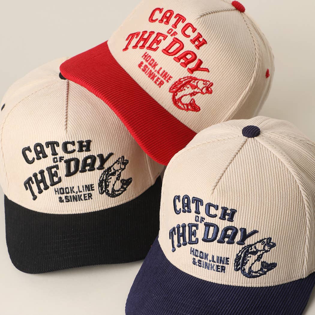 Prise du jour ! Le chapeau parfait pour une journée d'été au lac ! Disponible en casquette trucker en maille avec détail imprimé ou en casquette 5 panneaux en toile avec détail brodé ! Les deux sont de coupe unisexe avec un ajustement à l'arrière.