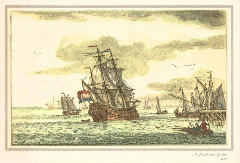 Impression vintage de navire anglais de 1520 derrière verre dans cadre en bois en vente B2B