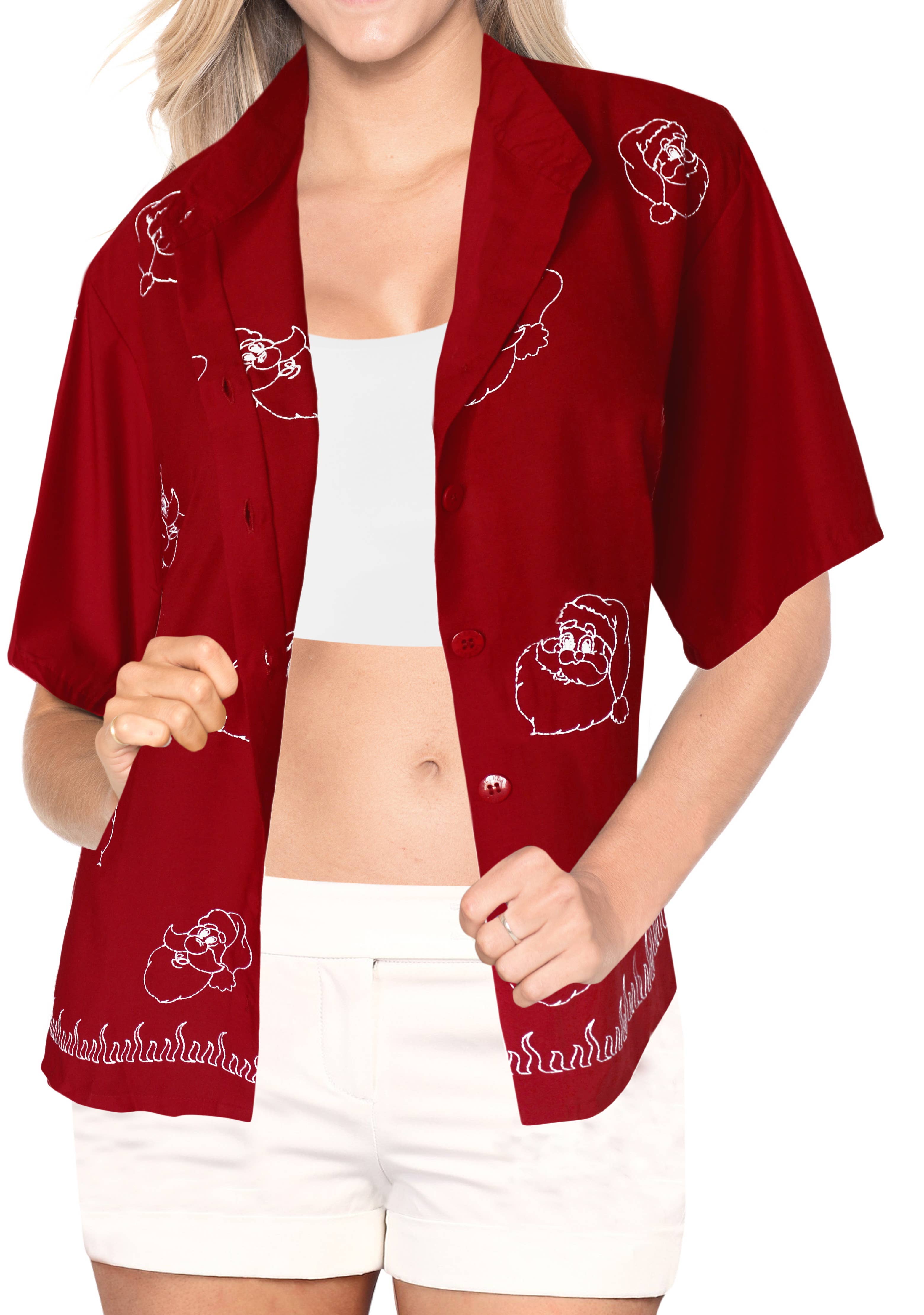 Chemise rouge LA LEELA Christmas Chill Santa pour femme P00603 en vente B2B