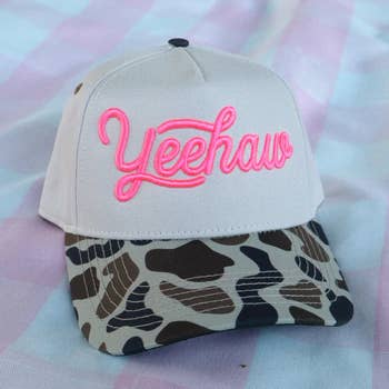 Casquette de baseball camionneur à broderie C.C YEEHAW en coton bicolore avec fermeture à pression 100 % coton Circonférence 22,5" Fabriqué au Vietnam