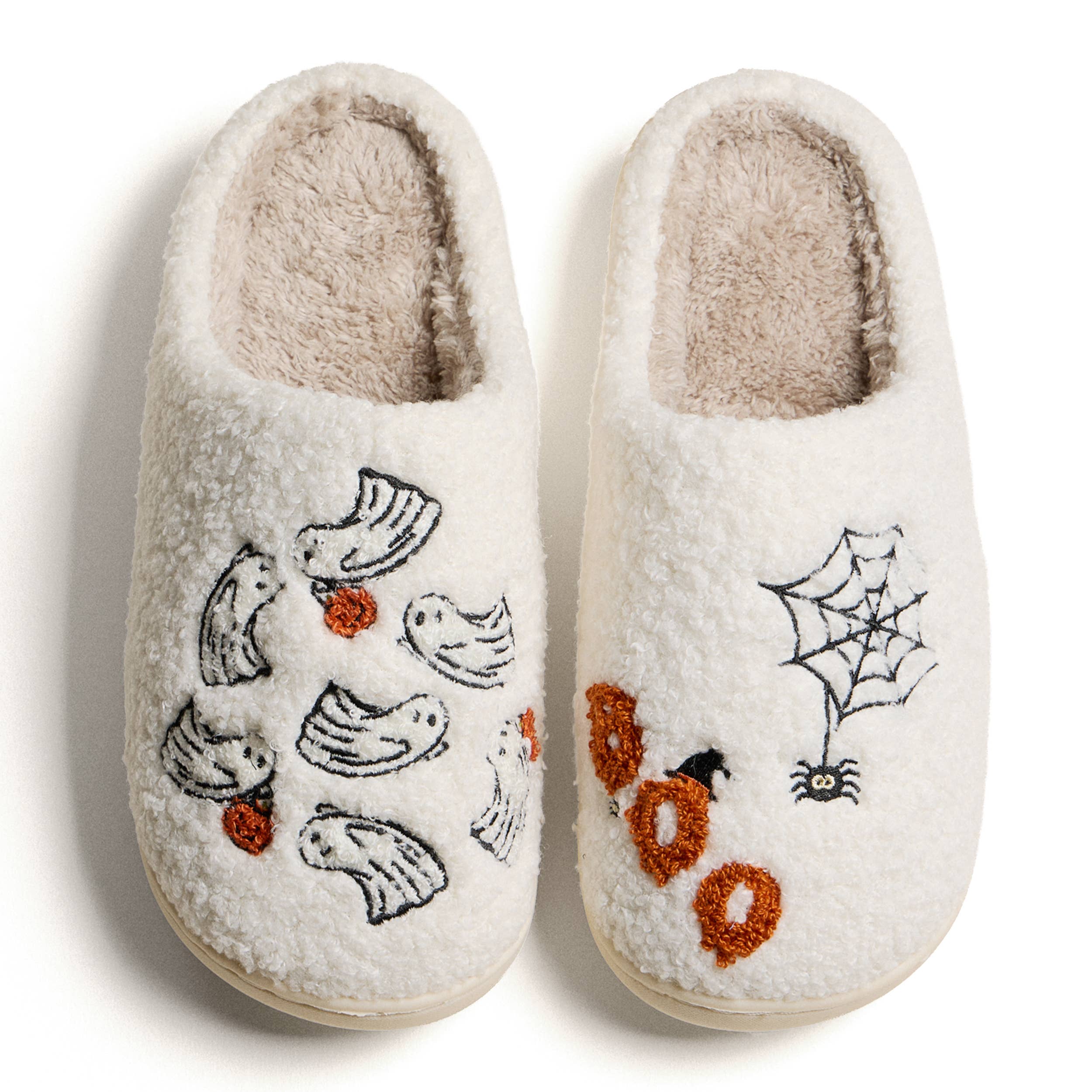6 paires de chaussons d’intérieur aux tailles assorties dans chaque paquet : - 2 paires petites (pointure femmes 36-37, 260 mm) - 3 paires moyennes (pointure femmes 38-39, 270 mm) - 1 paire grande (pointure femmes 40-41, 280 mm) Matière : 50 % PVC, 50 % polyester avec intérieur sherpa et semelle en caoutchouc. Entrez dans l’ambiance d’Halloween avec ces chaussons doux et chaleureux ornés de fantômes brodés, de toiles d’araignée et d’inscriptions "Boo". Ils offrent confort et esprit festif pour se détendre tout l’automne.