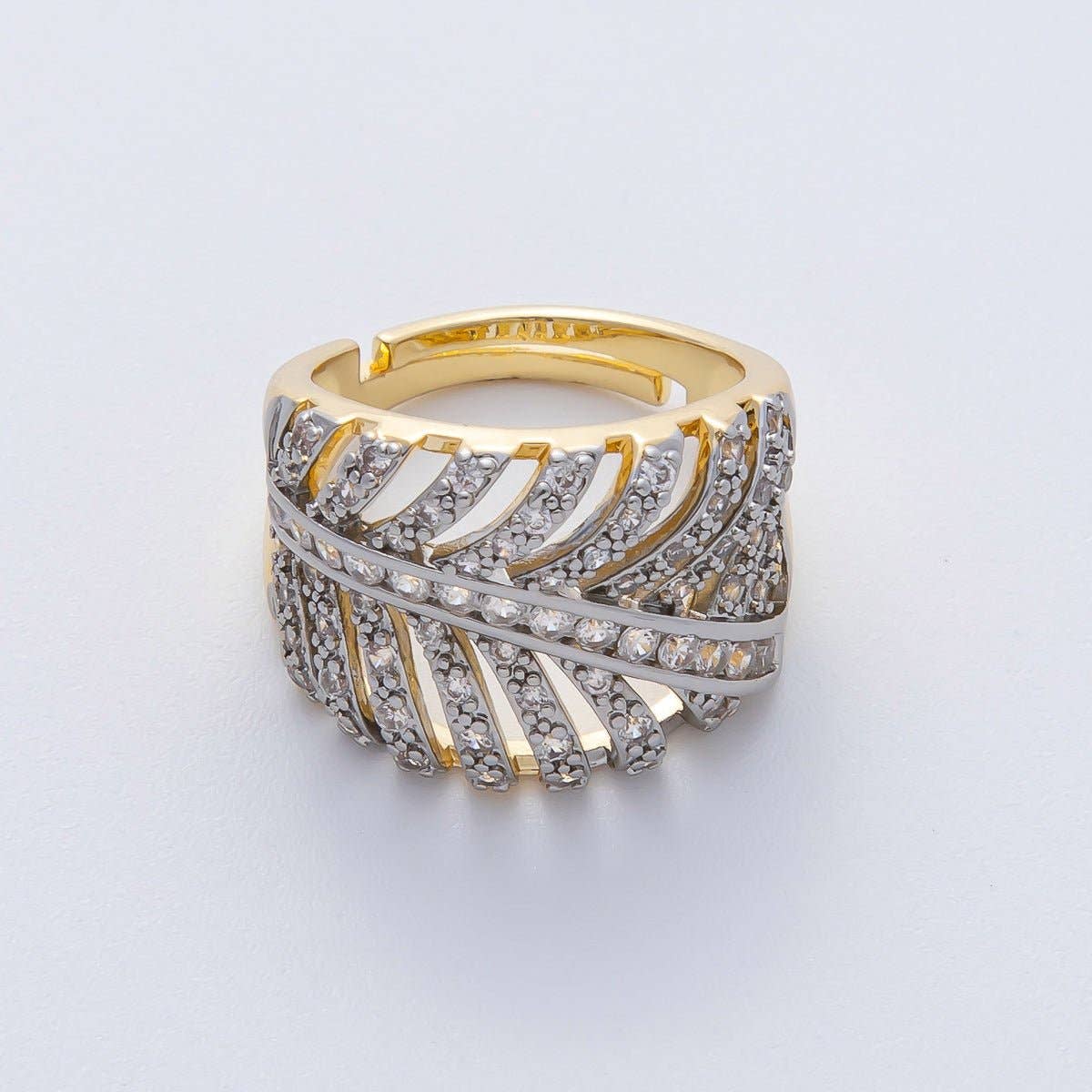 Faites une déclaration audacieuse avec cette bague frappante en forme de X, fabriquée à partir de matériau plaqué or 18K de qualité supérieure. Ce design contemporain présente une silhouette croisée dramatique avec des pierres CZ étincelantes ornant la moitié de la formation en X, créant une belle brillance asymétrique qui capte la lumière sous tous les angles. Le contraste sophistiqué entre la moitié en or lisse et la section incrustée de CZ éclatants ajoute un intérêt visuel et une touche moderne à cette pièce maîtresse. Les pierres de zircon cubique sont serties avec expertise pour maximiser leur éclat, tandis que la partie en or épurée équilibre le design avec une élégance sobre. * Métal : Plaqué or 18k * Bijoux hypoallergéniques - Sans nickel * Résistant à l'eau * Fait main au Brésil