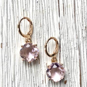 Mini-créoles à breloques en quartz rose en or 14 carats