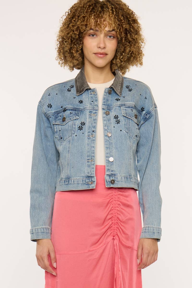 CJ6651-Veste en jean coupe décontractée avec détail smocké froncé en vente B2B