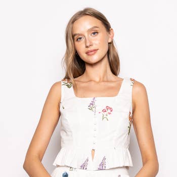 Pays de fabrication : Chine Couleur : Blanc Décoration : Brodé Encolure : Encolure ras-de-cou Longueur des manches : Manches courtes Motif : Floral Occasion : Quotidien Saison : Printemps/Été Silhouette : Standard Style : Classique Tissu : 100 % COTON Langue du produit : Anglais Poids : 181,44 g (6,4 oz) UGS : LWT1957_WHITE MULTI_S