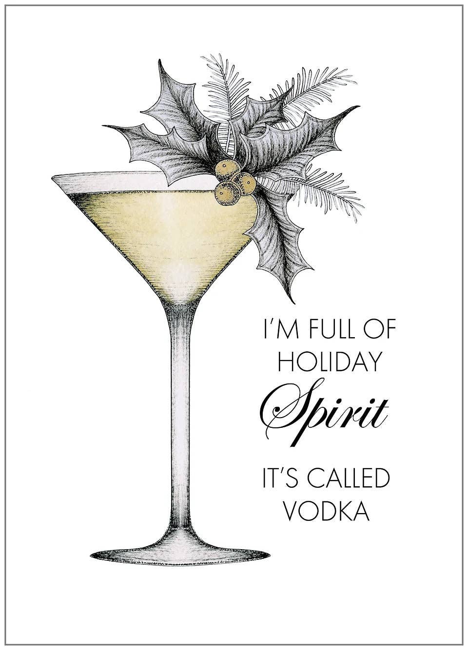 La carte de vœux cocktail "Get Into the Holiday Spirits" mélange amusement festif et une touche de glamour. Une carte de vacances ludique pour quiconque aime un bon verre et un peu de paillettes. Détails de la carte de vœux : Taille : Carte de vœux pliée A2 (4,25" x 5,5"). Matériau : Imprimée sur du papier cartonné blanc lisse, épais et durable, offrant une sensation de qualité supérieure à la carte. Chaque carte comprend une enveloppe à rabat carré blanche assortie. Qualité d'impression : Présente des couleurs imprimées de manière vibrante qui ressortent, garantissant un design accrocheur et clair. Emballage : La carte et l'enveloppe sont emballées dans une pochette transparente ouverte pour les protéger des dommages et de la saleté. Origine : Imprimée fièrement aux États-Unis et assemblée à la main dans notre studio, garantissant une production de haute qualité.
