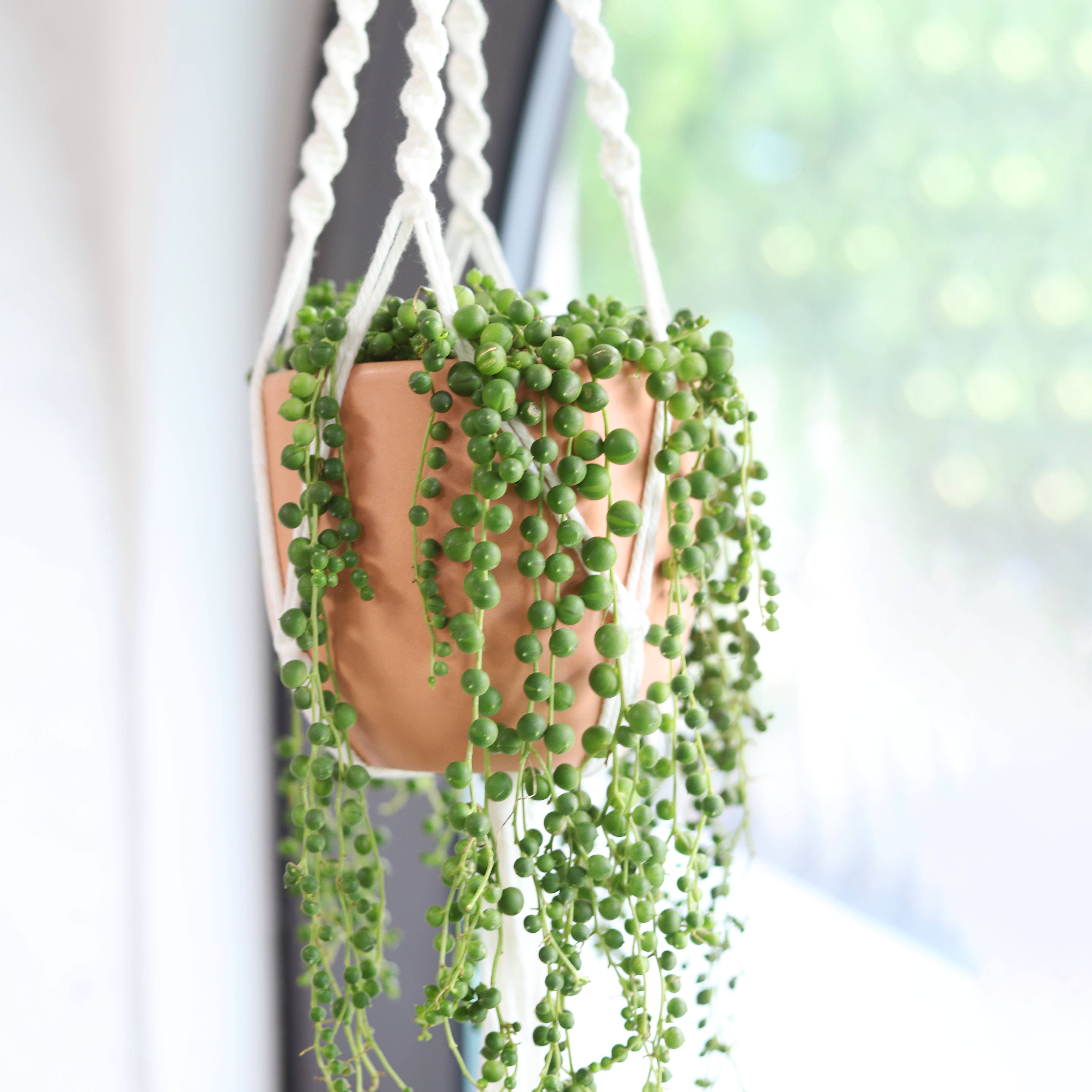 Notre magnifique chaîne de cœurs panachés à racines est disponible en taille de 4/6 pouces. La Ceropegia woodii variegata, également connue sous le nom de vigne du Rosaire, est très rare et très recherchée. Il a des tiges pourpres rampantes qui forment des tubercules au nœud et de belles feuilles charnues en forme de cœur blanc-rose-gris. Les String of Hearts panachés fleurissent généralement en été et en automne, mais des fleurs peuvent également apparaître à d'autres moments de l'année. Variegated String of Hearts est une plante suspendue populaire pour sa belle apparence et sa nature vinicole. Lumière/Sol/Eau : + Lumière vive (avec un peu de soleil direct). + Terreau poreux et bien drainé. + Arrosez abondamment lorsque la terre est sèche au toucher, puis laissez égoutter complètement.