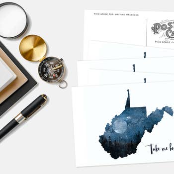 Passez une nuit dans les Blue Ridge Mountains - Carte postale 16 caractères de 5 po x 7 po - Face avant avec revêtement UV (brillant) - Imprimé localement par Ink Pusher Screenprinting