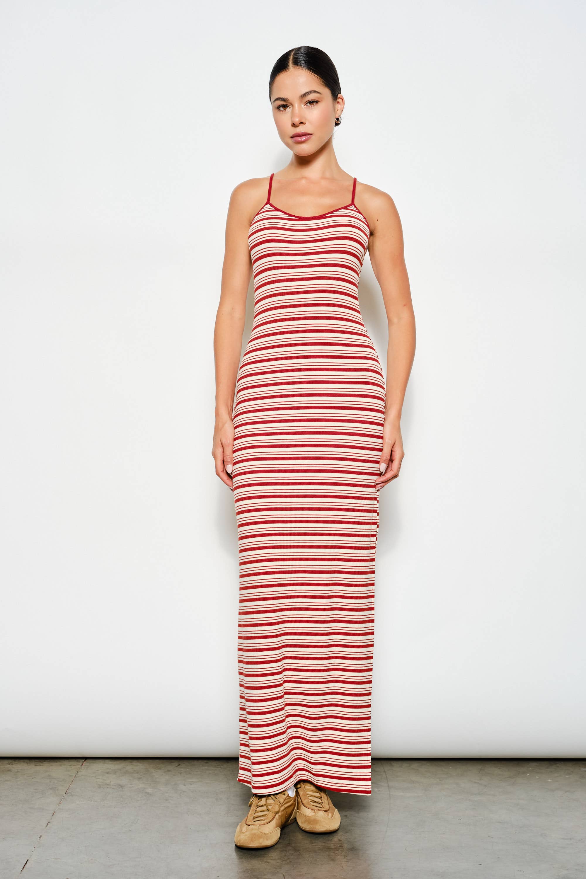 Robe longue rayée à col nu avec poche latérale en vente B2B