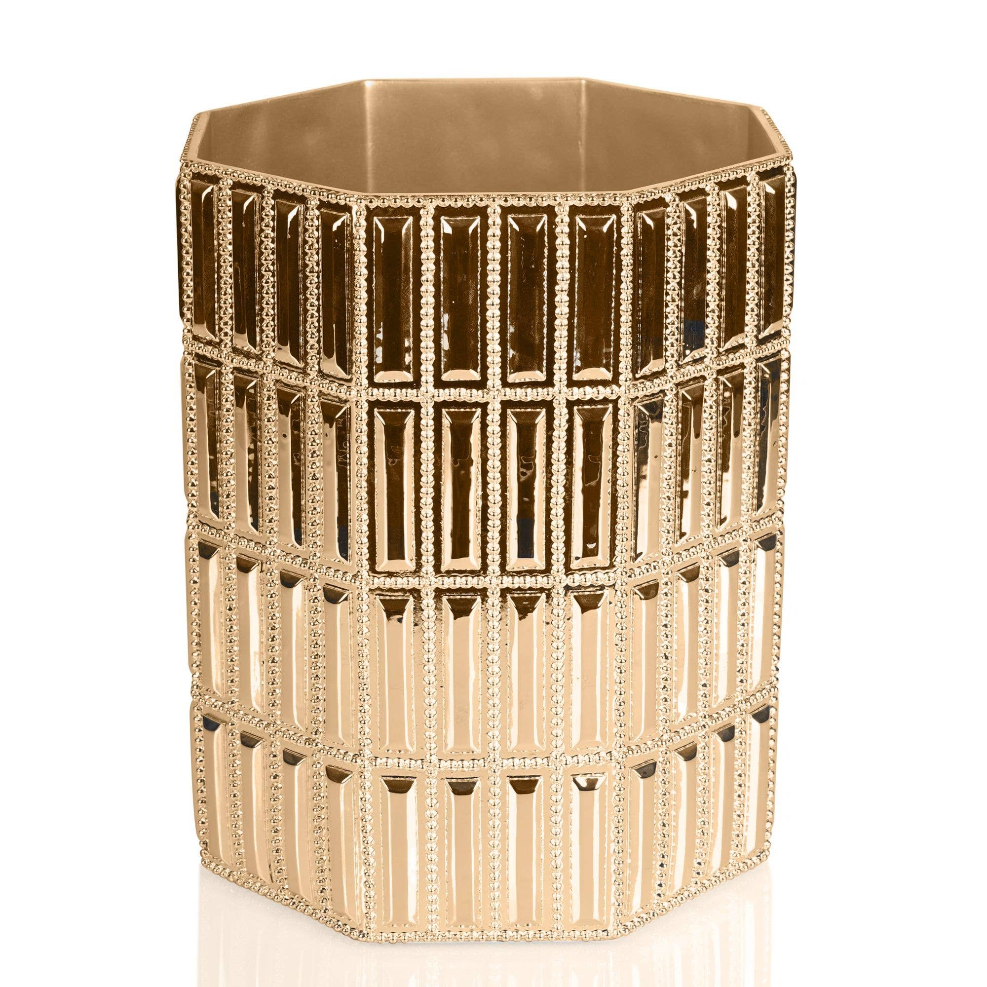 Nos corbeilles à papier sont fabriquées à la main sur commande par notre équipe de Houston, au Texas. La corbeille à papier est en bois. L'œuvre est découpée à la main, découpée et polie par notre petite équipe d'artisans. Chaque corbeille à papier est soigneusement peinte en or ou en argent sur les bords pour apporter la touche finale parfaite. Nous proposons deux styles de corbeilles à papier : à dessus plat en bois et à dessus festonné en bois. Veuillez nous envoyer un message si vous souhaitez commander un style différent de celui de l'image présentée sur cette annonce. Caractéristiques : • Dimensions : 9 pouces de largeur x 9 pouces de profondeur/longueur x 11 pouces de hauteur. • Extérieur résistant à l'eau. • Matériaux durables et de haute qualité. INSTRUCTIONS D'ENTRETIEN : Nettoyer avec un gant de toilette humide ou un essuie-tout. Ne pas immerger dans l'eau.