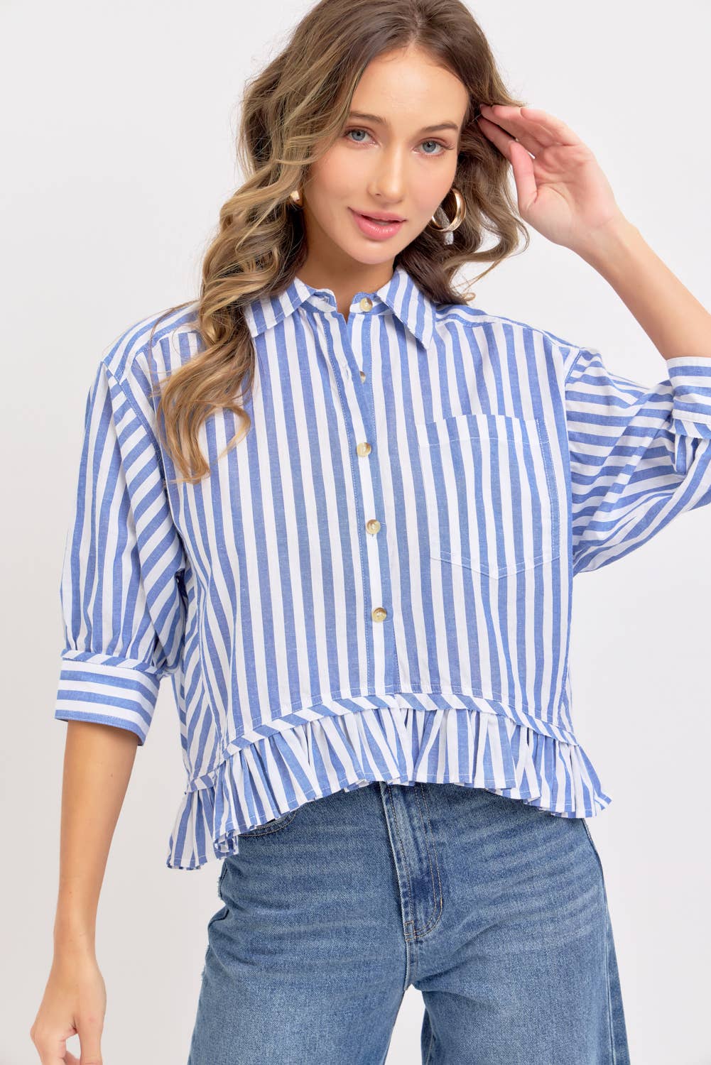 Chemise mi-longue rayée à manches longues TOPW1835 en vente B2B