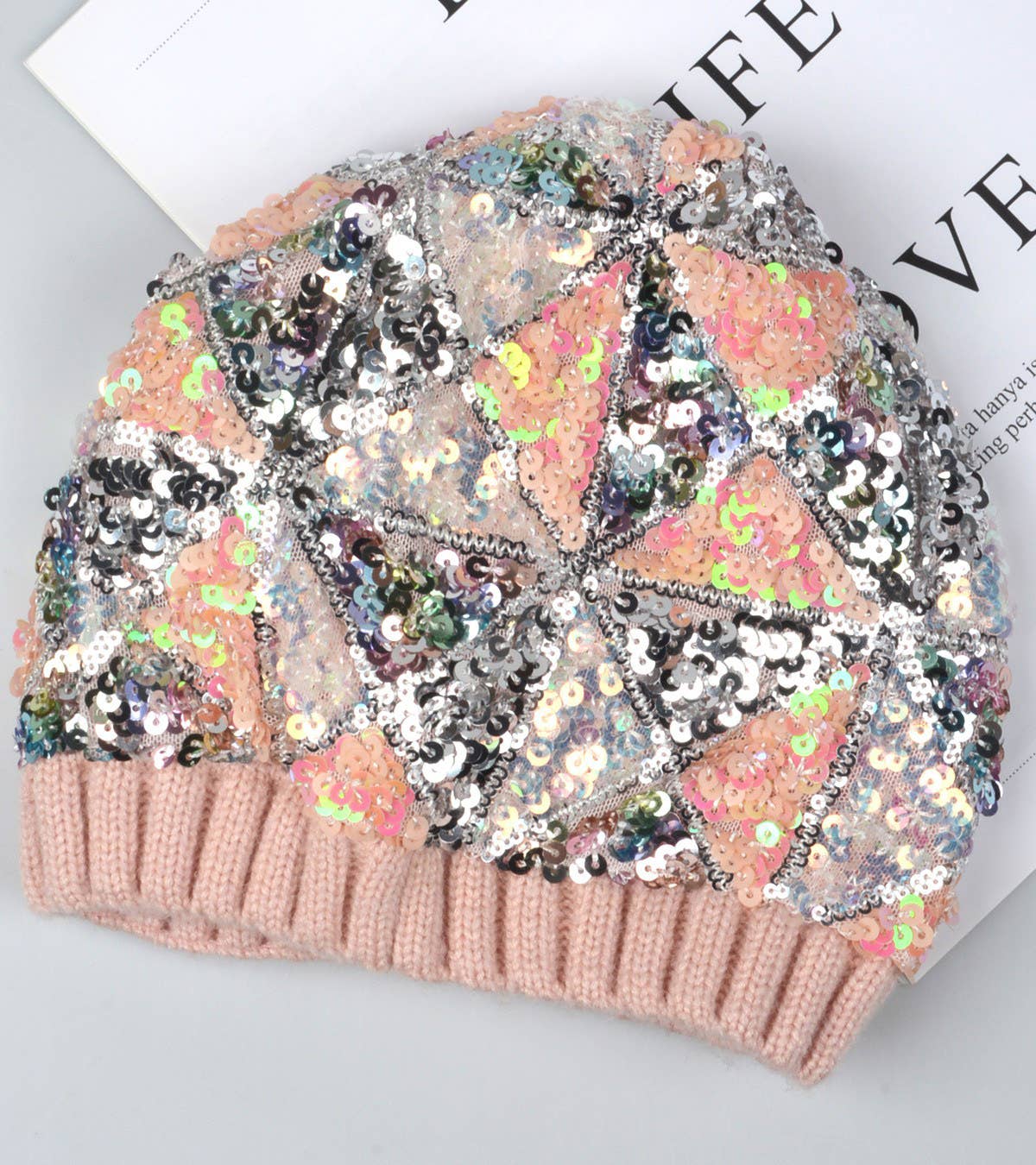 Bonnet ample en laine soyeuse orné de pierres scintillantes dégradé