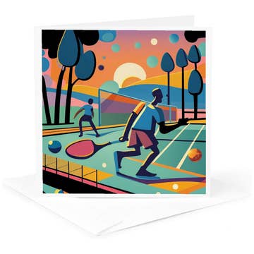 Notre coffret cadeau Pickleball est imprimé et scintillé à la main à Memphis, dans le Tennessee. Œuvre d'art fabriquée à la main, imprimée à l'encre polychrome sur du papier blanc naturel et associée à une enveloppe en vélin. Carte jointe pliée dans un livre, vierge à l'intérieur. Couleur du papier | blanc naturel. Couleur de l'enveloppe | vélin. Processus d'impression | polychromie et typographie Embellissement | feuille dorée Dimensions | 3 x 3 pouces.