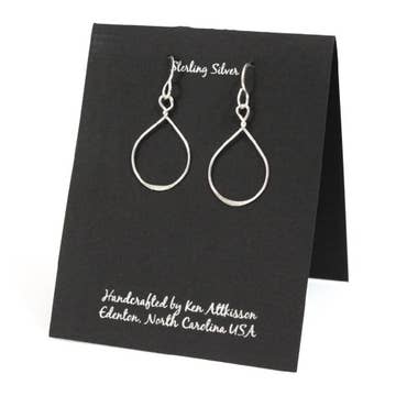 Design découpé et percé à la main inspiré par des formes botaniques. Les boucles d'oreilles sont en cuivre et scellées avec un revêtement transparent pour maintenir leur éclat. Les crochets d'oreilles sont en argent sterling. Choisissez parmi : Fleur, Thym, Pousse, Branche, Fougère ou Ginkgo Des colliers assortis sont également disponibles. Longueur des boucles d'oreilles : 1,75" Tous nos bijoux sont disponibles sur petites, grandes, ou sans cartes.