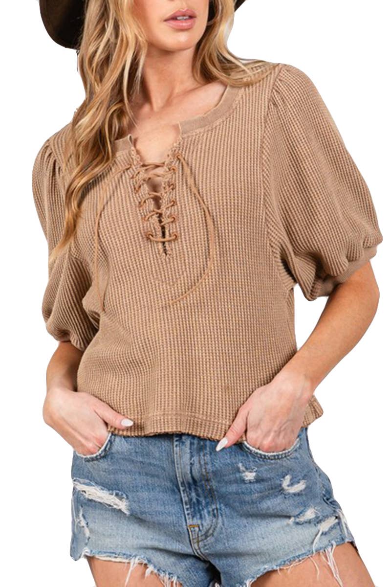 Top décontracté en maille flammée à manches ballon oversize EN SOLDES