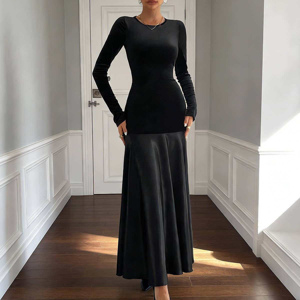 Blair - Robe maxi en jersey avec taille corset - PRÊTE À EXPÉDIER