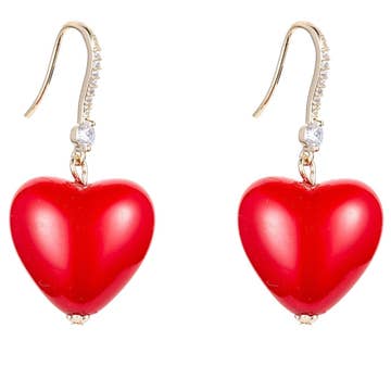 Créé avec de l'acétate de cellulose rose bébé nacré luxueux avec des détails peints en rouge, poli pour une finition brillante Les cadenas en forme de cœur mesurent 1,25" de large Fermoirs de boucles d'oreilles rhodiés N'oubliez pas le collier assorti et le charme de sac - disponibles en offre groupée !
