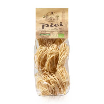 Pack varié de pâtes italiennes biologiques premium. Créez de délicieux plats de pâtes artisanales et savourez de véritables pâtes italiennes authentiquement créées avec des ingrédients simples et de haute qualité, selon des méthodes traditionnelles au cœur de l'Italie. L'échantillon de pâtes italiennes comprend trois paquets de 500g chacun : Pâtes Busiate - Pâtes en spirale faites à la main à partir de semoule de blé dur, Pâtes Bucatini - Pâtes en tube biologiques à partir de semoule de blé dur, Pâtes Pici - Nids de pâtes épaisses à partir de semoule de blé dur. Morelli crée des pâtes italiennes gastronomiques en Toscane depuis 1860 et est une entreprise familiale dont la 5ème génération préserve actuellement les traditions mises en place par leurs ancêtres. Ils utilisent une méthode artisanale de réincorporation du germe de blé dans la semoule pour créer de nombreuses de leurs pâtes avec un goût unique et l'arôme du blé. Leurs pâtes ont également un niveau élevé de vitamines A et D grâce à leurs ingrédients inhabituels.