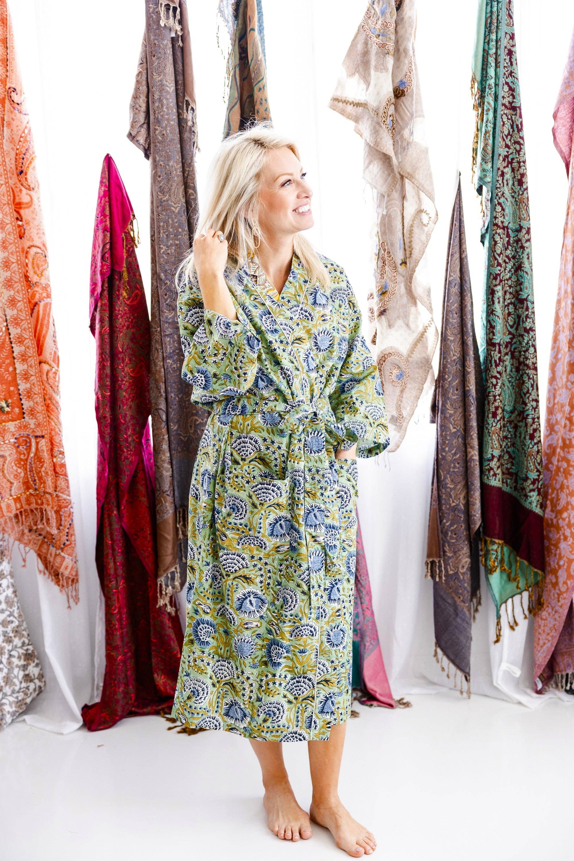 Notre magnifique robe de chambre de mariée est le complément parfait à un jour de mariage. Cette robe de chambre de mariée serait parfaite pour se préparer le matin du mariage pour la future mariée. Ce serait également un excellent cadeau pour une mariée lors de son week-end de poule ou à porter pendant la lune de miel. Un beau motif floral bleu, sur un peignoir blanc jusqu'aux genoux, parfait pour un mariage moderne. Ce modèle est également disponible pour les autres membres de la fête nuptiale, pour une belle fête le grand jour ou le week-end des enterrements de vie de jeune fille. Ce peignoir de mariée sera un parfait rappel du jour du mariage. Ce peignoir de style kimono floral est en jersey super doux mais léger, avec un lien en tissu. Imprimé à la main avec amour et soin par Lovetree Design dans notre studio dans les West Midlands. Disponible pour demoiselle d'honneur, demoiselle d'honneur, mère de la mariée et mère du marié.