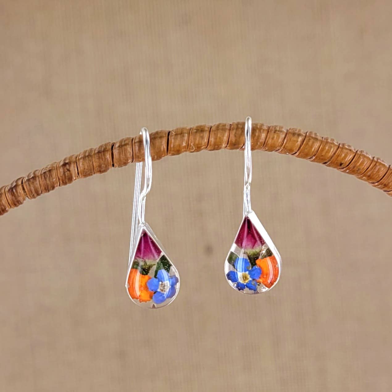 Boucles d'oreilles pendantes en forme de jonquille et de fleurs séchées - PDF en vente B2B