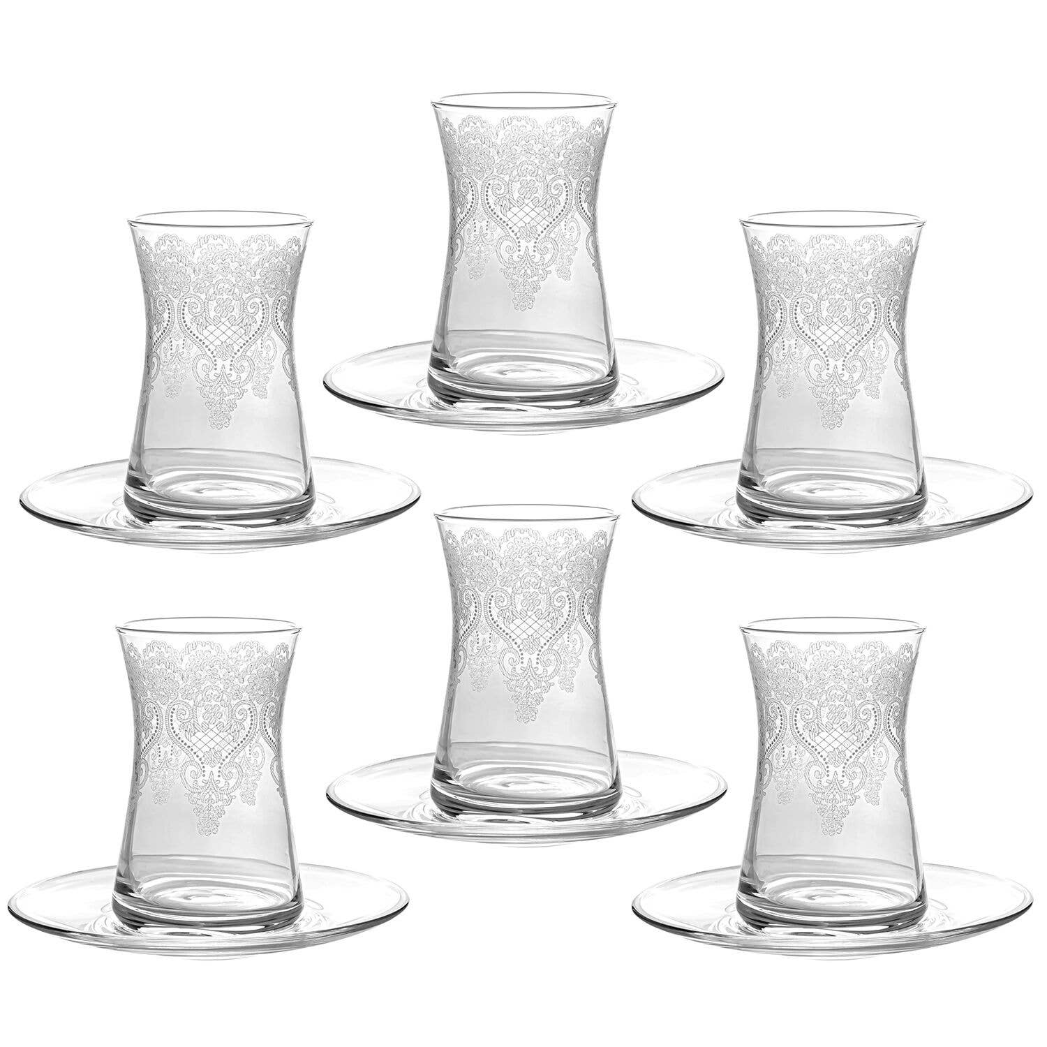 Ensemble de tasses à thé turques, verres à thé traditionnels, 4,5 oz, 6 pièces Le service à thé LAV Glassware est fabriqué en verre européen de haute qualité et durable. Vous apprécierez le thé avec votre service à thé LAV, qui conviendra à votre théière ou à votre samovar. Les ustensiles de cuisine en verre sont bénéfiques pour la santé, car le verre est bon pour vos aliments. Chaque élément qui compose les lunettes est naturel et l'a toujours été. Les résultats d'une étude récente ont été publiés et montrent que les consommateurs sont tous d'accord pour dire que le verre est un matériau sûr. Le verre est fabriqué à partir de matières premières entièrement naturelles et durables, est 100 % recyclable et peut être recyclé à l'infini sans perte de qualité ou de pureté. SAIN EUROPÉEN SANS PLOMB DE HAUTE QUALITÉ - Tous nos services à thé haut de gamme sont fabriqués en verre durable qui n'absorbe pas les odeurs ni les taches. Vous pouvez l'utiliser en toute sécurité au lave-vaisselle, au congélateur et au micro-ondes. Excellente idée cadeau : lorsque vous voulez offrir un cadeau unique et utile à la fois, ces verres à thé turcs sont la solution idéale.