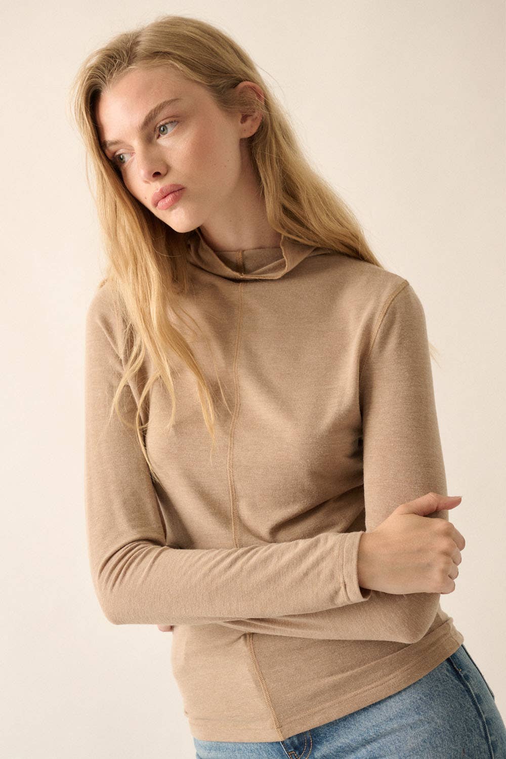 Haut côtelé à col montant avec boutons sur les manches - 41596T en vente B2B