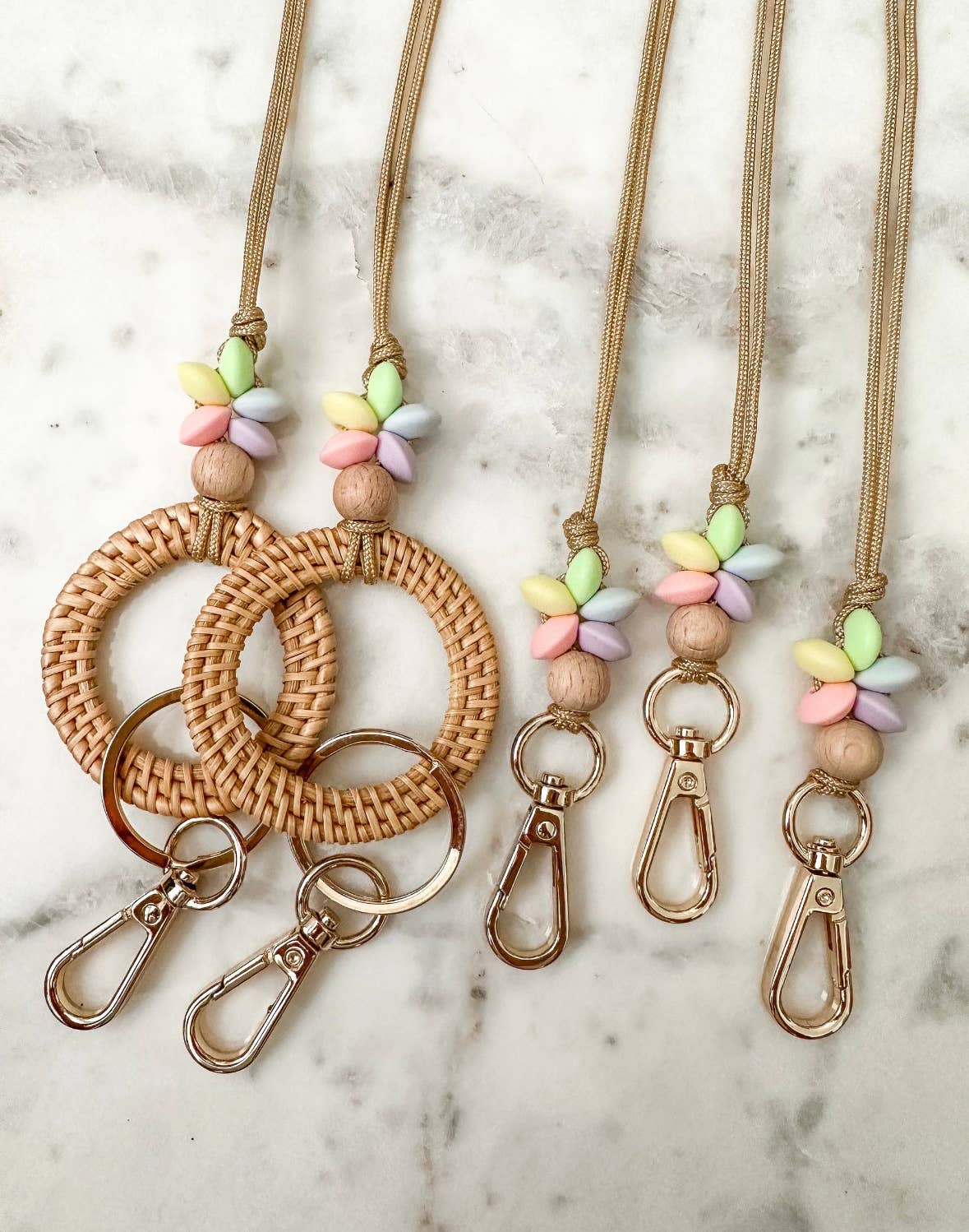 Il s'agit d'un cordon détachable qui mesure environ 20 à 21 pouces de long de haut en bas. Nos perles en bois varient légèrement de temps en temps. Les images montrent les différentes tailles de perles de bois qui peuvent figurer sur votre cordon.