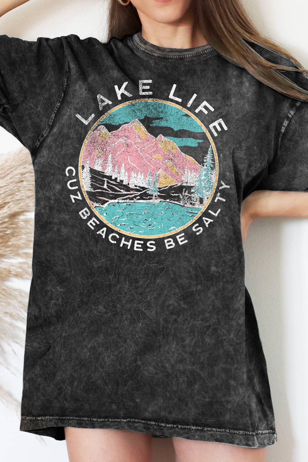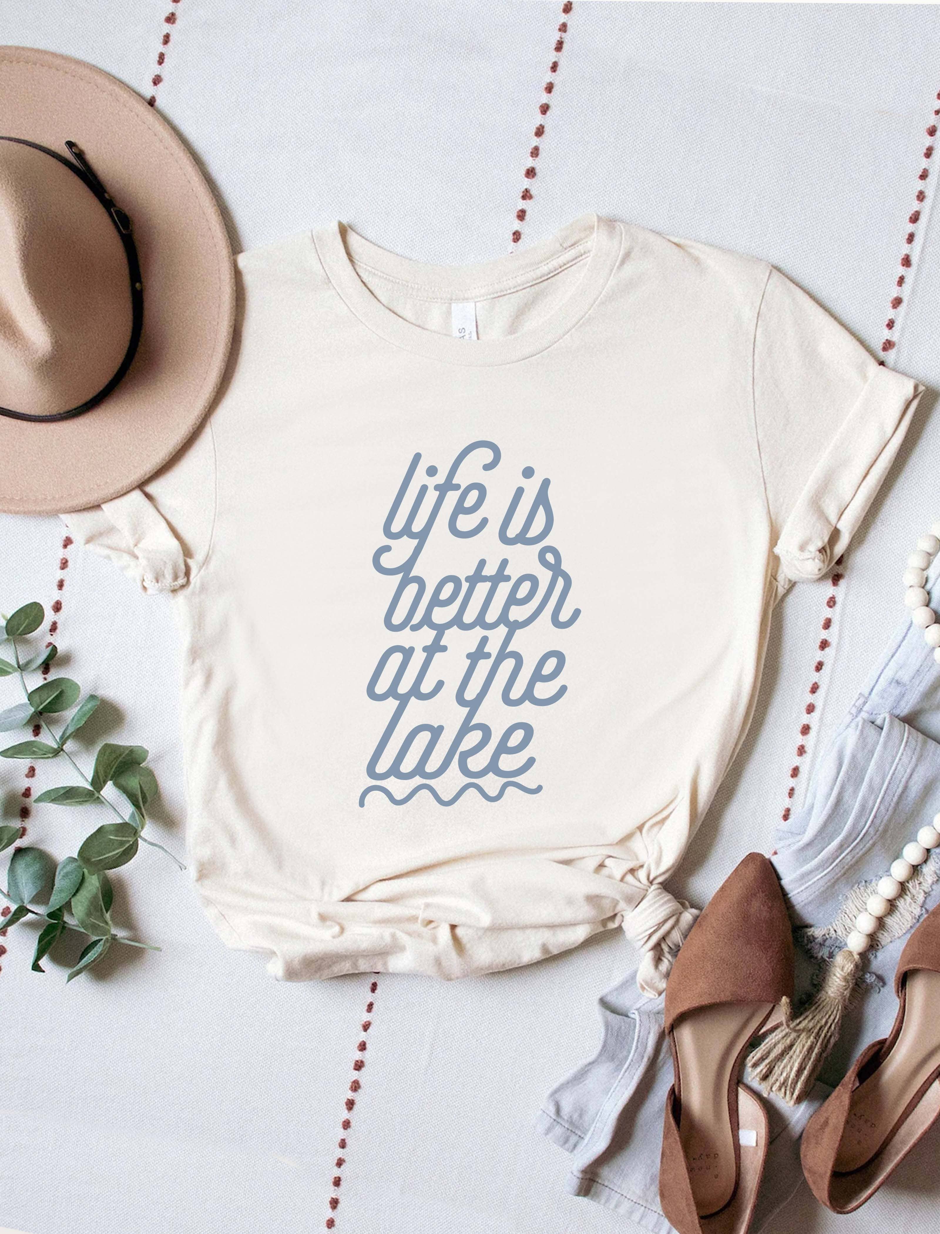 T-shirt unisexe à manches courtes et col rond Lake Life Cuz Beaches Be Salty, Summer, imprimé graphique, FABRIQUÉ SUR COMMANDE.